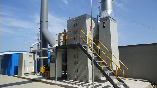 催化燃燒系統:主要由催化燃燒床(由電加熱室、催化室和熱交換器組成)、阻火器、溫度探測器和相應的電動閥門、保溫管道組成。主要功能是利用催化燃燒床中電加熱器來加熱生產線產生的廢氣,使其中的有機廢氣在催化劑的作用下于280-300℃左右轉化為CO2和H2O并釋放出大量熱量。熱量通過熱交換器對熱量再利用。 控制系統:主要由PLC電控柜、溫度顯示儀表、電動閥門執行器及面板模擬流程圖等組成。